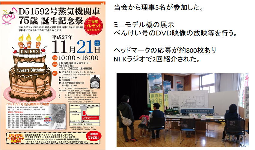 | 「笠戸島D51592を燦かせる会」主催「D51592号蒸気機関車75歳誕生記念祭」出展 |