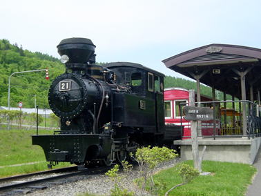 道で使用されていた蒸気機関車「雨宮21号」、およびディーゼル機関車(DL)が運行されている。 |