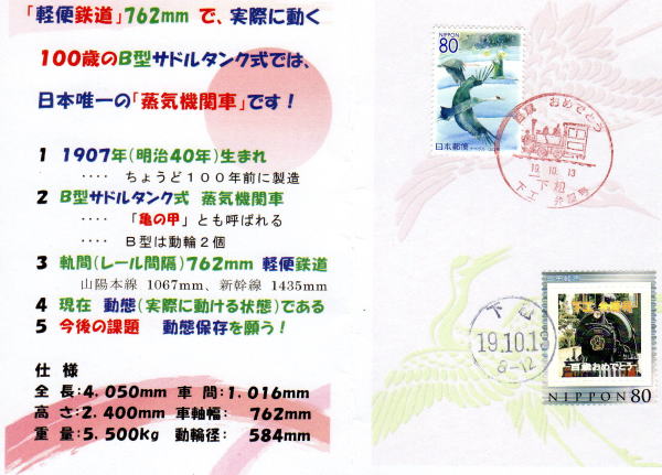 「下工弁慶号を応援する会」が発行した記念切手  |
